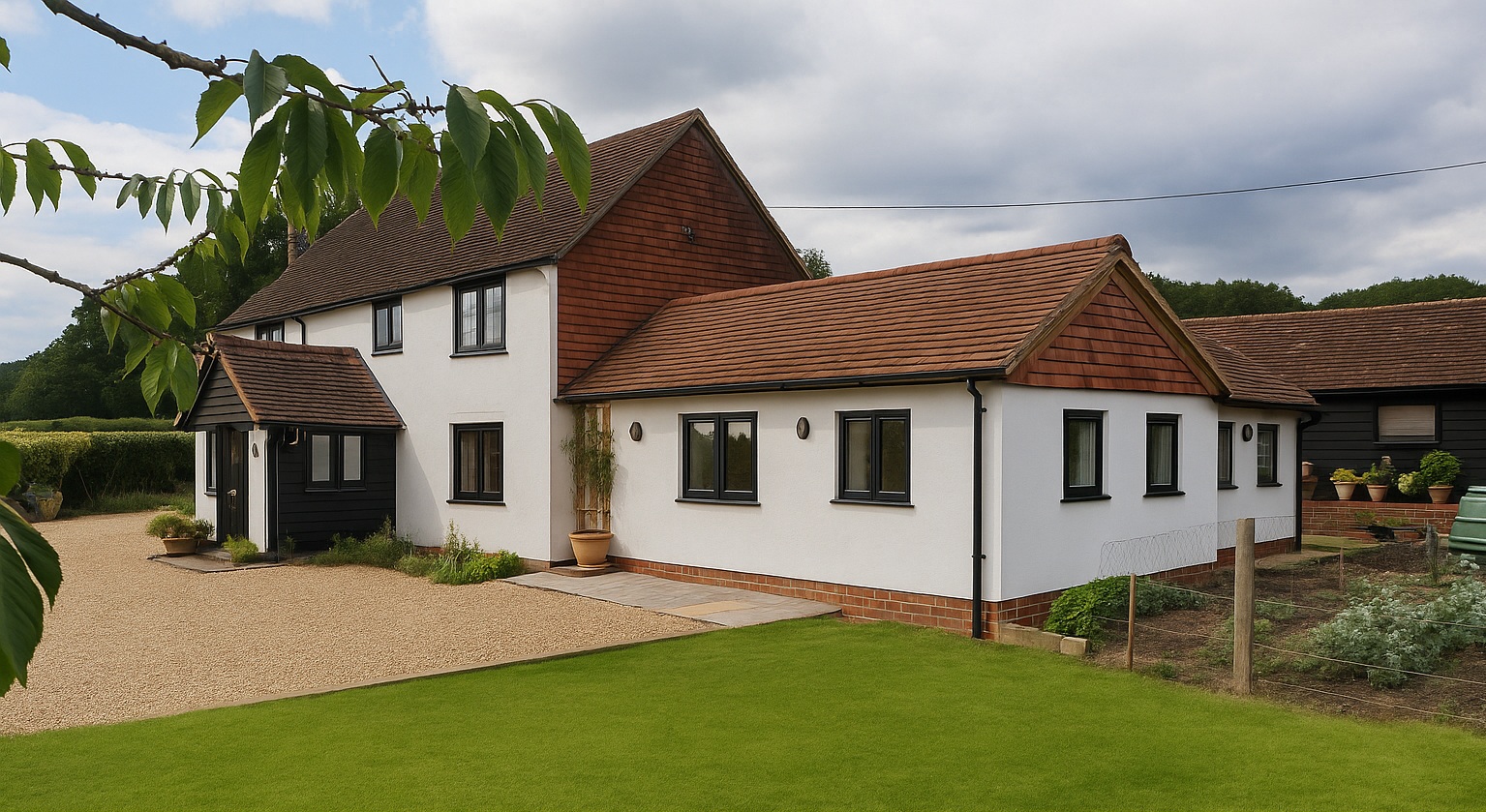 The extension was positioned to optimise sunlight penetration while preserving the rural setting and neighbouring amenity. Every proportion, tile match, and material transition was carefully considered to reflect the heritage of the property and comply with National Park design guidance.